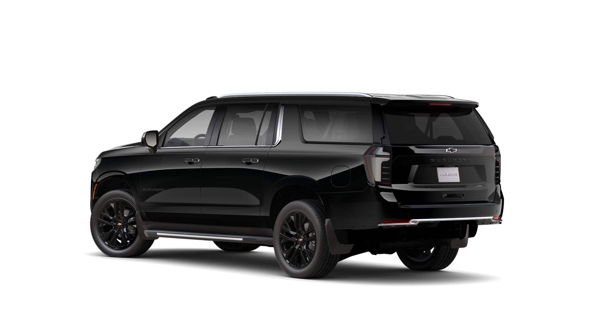 Black 2025 Chevrolet Suburban Premier 4WD 10-Speed Automatic with Overdrive EcoTec3 5.3L V8 Bluetooth®, Backup Camera, LOADED WITH LUXURY, 10 Speakers, 20 x 9 Polished Aluminum Wheels, 3rd Row 60/40 Power-Folding Split-Bench, 4-Way Power Driver Lumbar Seat Adjuster, 4-Wheel Disc Brakes, 8-Way Power Driver Seat Adjuster, 8-Way Power Front Passenger Seat Adjuster, ABS brakes, Adaptive suspension, Air Conditioning, Alloy wheels, AM/FM radio: SiriusXM with 360L, Apple CarPlay/Android Auto, Auto High-beam Headlights, Auto-dimming door mirrors, Auto-Dimming Inside Rear-View Mirror, Auto-dimming Rear-View mirror, Auto-leveling suspension, Automatic temperature control, AutoSense Hands-Free Power Liftgate, Brake assist, Delay-off headlights, Driver door bin, Dual Exhaust System, Electronic Stability Control, Four wheel independent suspension, Front dual zone A/C, Front fog lights, Front LED Fog Lamps, Fully automatic headlights, Heated 2nd Row Outboard Seats, Heated door mirrors, Heated front seats, Heated Power-Adjustable Outside Mirrors, Heated Steering Wheel, Illuminated entry, LED Tail Lamps, Magnetic Ride Control Suspension, Memory seat, Memory Settings, Navigation system: Google built-in compatibility (select service plan required, terms and limitations apply), Perforated Leather Seating Surfaces, Power door mirrors, Power driver seat, Power passenger seat, Power steering, Power windows, Radio data system, Radio: 17.7 Diagonal Advanced Color LCD Display, Rain sensing wipers, Rear air conditioning, Rear Power Liftgate, Rear window defroster, Rear window wiper, Remote keyless entry, Speed-sensing steering, Spoiler, Steering wheel memory, Steering wheel mounted audio controls, Telescoping steering wheel, Tilt steering wheel, Traction control, Turn signal indicator mirrors, Universal Home Remote, Variably intermittent wipers, Wireless Apple CarPlay/Wireless Android Auto.